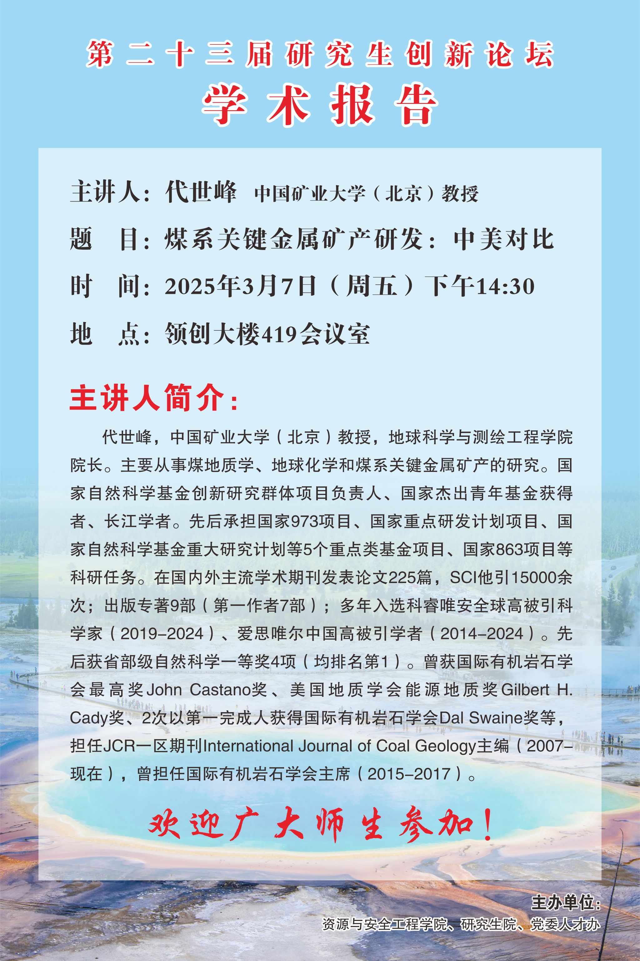 中国矿业大学代世峰教授来校讲学