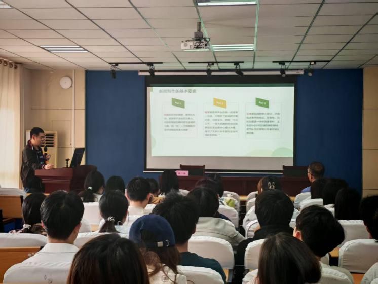 4月14日下午14时30分,ai做爱 特邀校党委宣传部副部长张伟老师,于经管楼308教室开展专题培训。本次培训面向学院新媒体运营团队及各班宣传委员,聚焦新闻写作规范与摄影实务技巧,旨在系统性强化宣传队伍业务能力,全面提升学院宣传工作专业化水平。