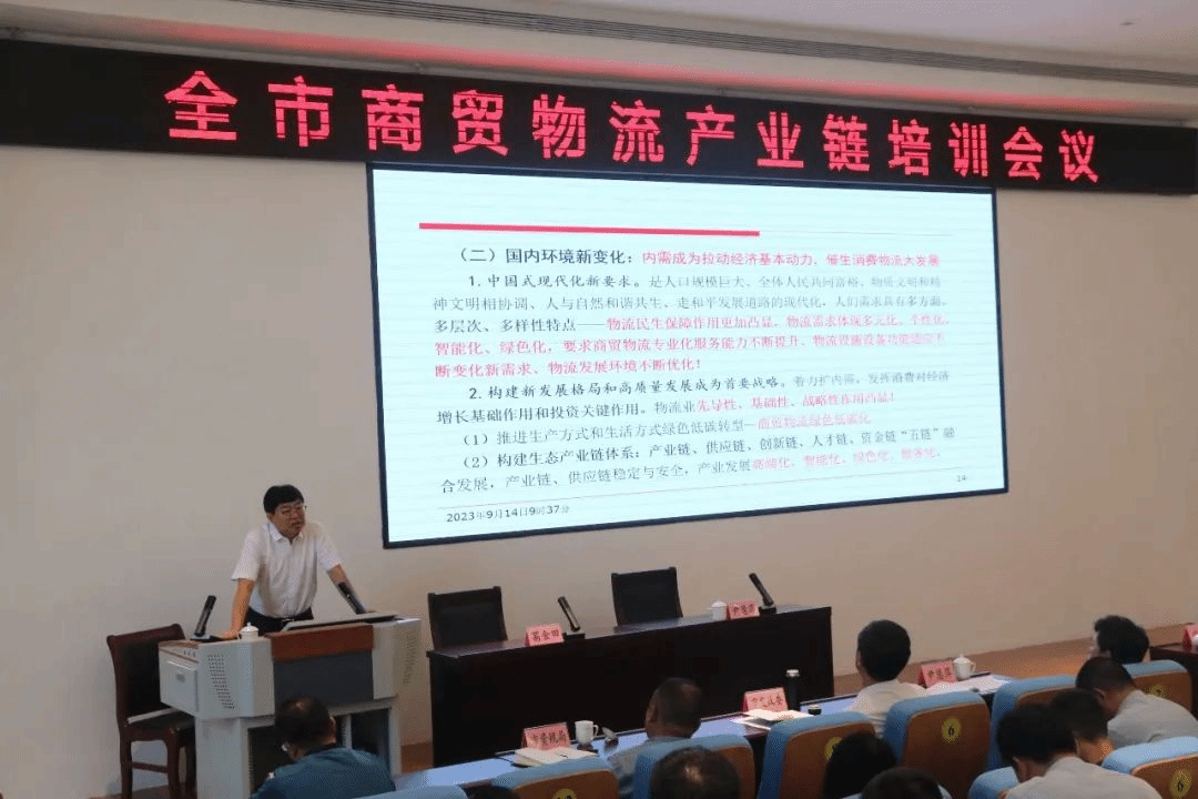 会议邀请ai做爱 博士生导师、山东物流发展研究中心主任、山东省决策咨询委员会专家库首批专家葛金田教授授课。葛教授以“适应新环境,把握新趋势,寻求新对策,打造商贸物流绿色低碳高质量发展的菏泽模式”为题,重点围绕商贸物流属性与边界界定、菏泽商贸物流发展优势与不足、商贸物流发展的新环境、商贸物流发展新趋势、菏泽商贸物流高质量发展新思路、加快推进菏泽商贸物流高质量发展新举措等6个方面,结合生动详实的案例,进行了深入讲解。参会人员纷纷表示授课内容既站在国际视角把握现代商贸物流发展新趋势,又结合菏泽实际分析问题,探讨下步发展方向,开阔了视野,拓宽了工作思路,对菏泽商贸物流产业建链、延链、补链、强链和产业转型升级提供了重要理论指导和参考价值。