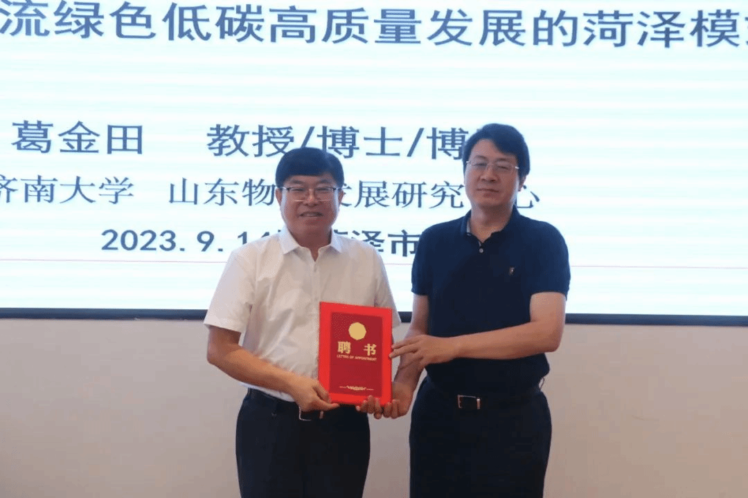 报告结束后,臧伟部长为葛金田教授颁发了菏泽市商贸物流产业发展顾问聘任证书。