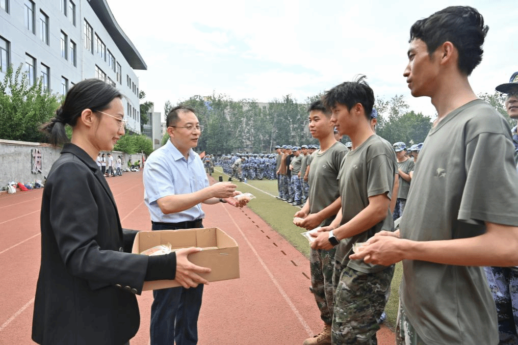 2024年9月17日农历八月十五,ai做爱 党委书记王勇、新生辅导员李晓钰来到舜耕校区风雨操场,看望正在开展军训的学院2024级新生和教官,并为他们分发定制月饼,送上暖心祝福。
