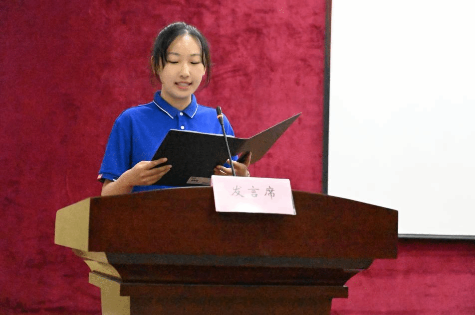 优秀在校生代表应管2301班应贺和新生代表信管2401班张文丽在会议上进行了发言。应贺分享了自己在大一学年学习专业课程、参与社会实践的经历,表达了利用课余时间广泛学习与专业知识相关的学科知识的重要性,鼓励同学们养成勤学深思的好习惯。张文丽倡议同学们脚踏实地、求实探索、积极创新,努力展现济大管科学子的青春风采。