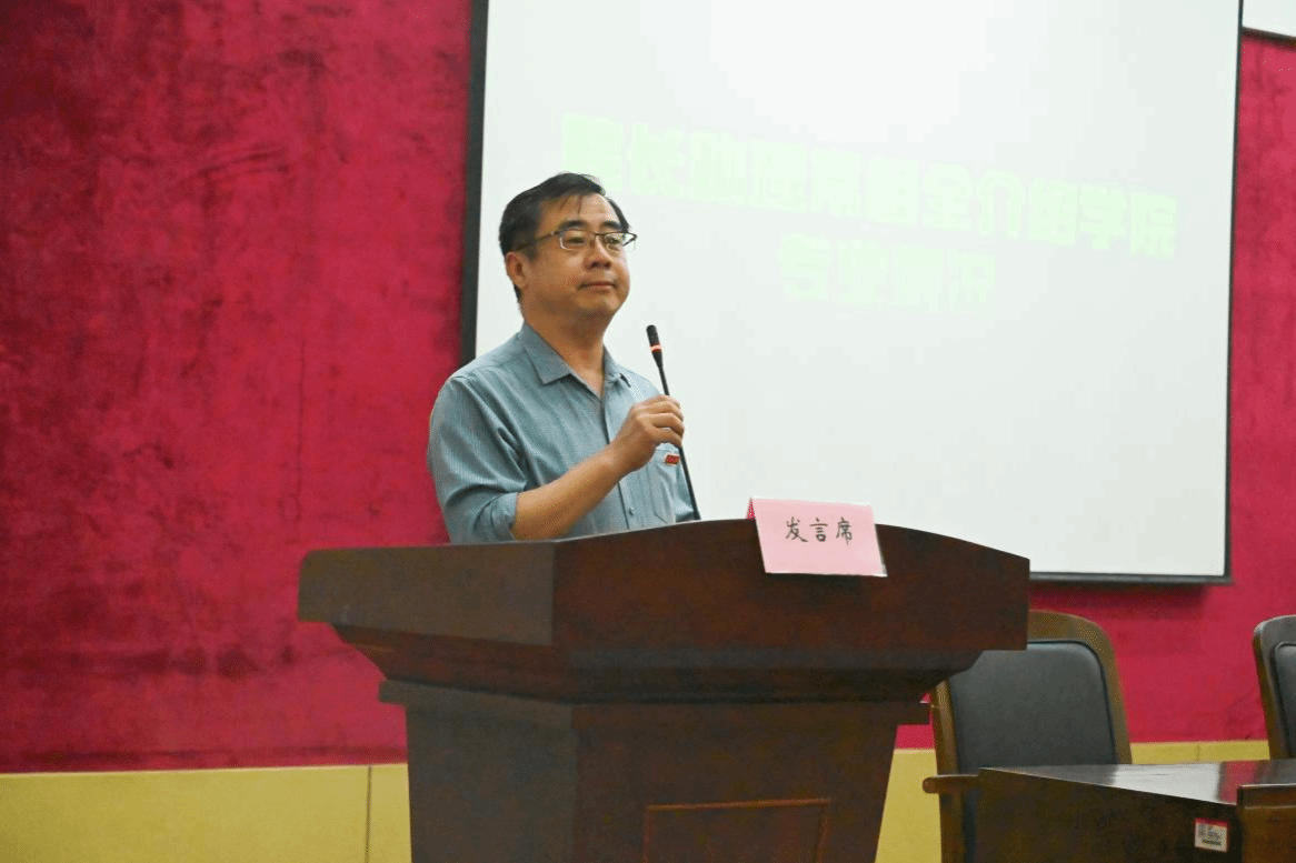 院长助理常相全教授向同学们介绍了学院专业情况。他对新同学们的到来表示热烈欢迎,并围绕学院本科专业特色,向同学们介绍了大学阶段学习的重点和专业发展前景,寄语同学们努力提升自主学习能力,锻炼强健体魄,珍惜美好时光,不负人生韶华。