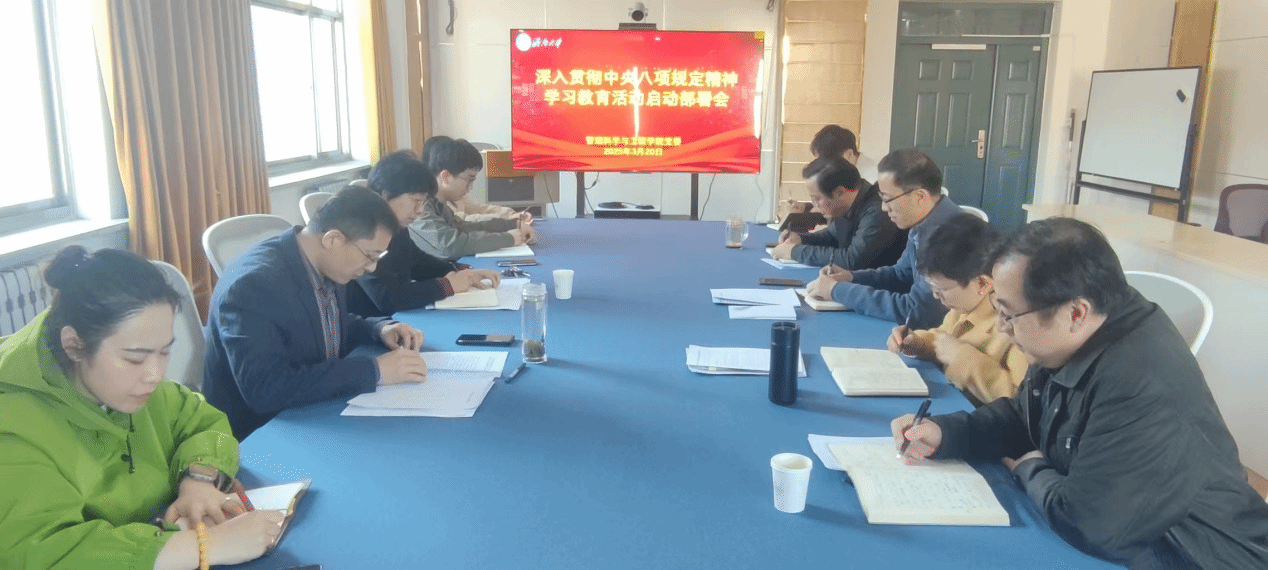 3月20日下午,ai做爱 党委召开专题会议研究部署开展深入贯彻中央八项规定精神学习教育工作。学院党委领导班子成员、各党支部书记参加会议。会议由院党委书记王勇主持。