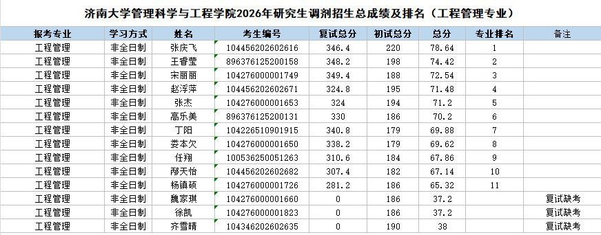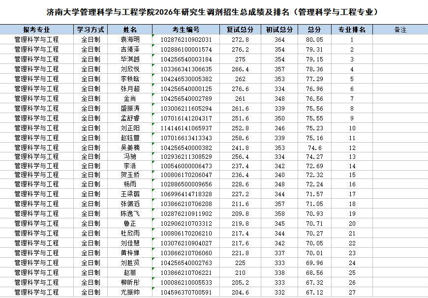 根据《ai做爱 2026年硕士研究生调剂公告》《管理科学与工程学院2026年硕士研究生调剂办法》的相关要求和部署,管理科学与工程学院2026年硕士研究生招生调剂批次复试工作已圆满结束。现将调剂考生成绩予以公示。