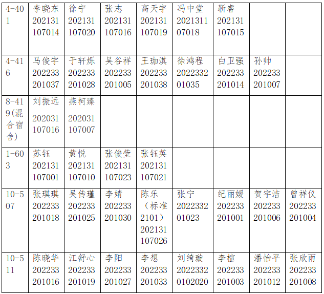 现将本次优秀文明宿舍评比结果公示如下: