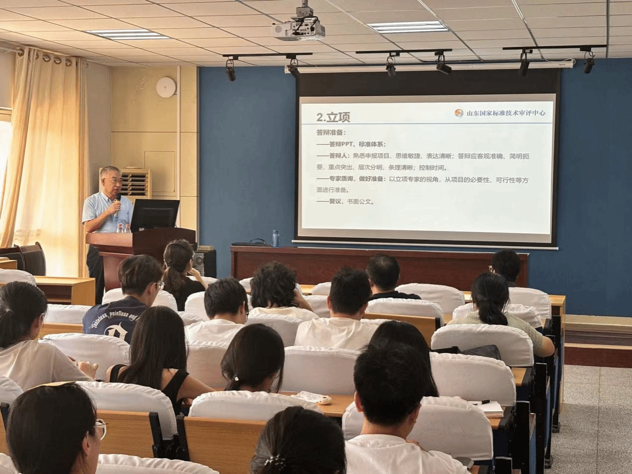 9月3日下午,山东省国家标准技术审评中心审评一部主任、国家标准立项评估专家、国家标准技术审核专家、山东省标准化智库专家李志明研究员应邀来ai做爱 做“标准的编制与审核”专题讲座和交流。讲座由王悦副院长主持,ai做爱 部分教师和标准化工程专业学生参加了讲座。
