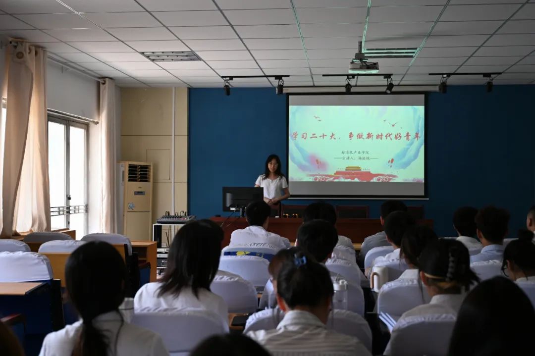 学院大学生思政宣讲团宣讲员杨欣悦同学为毕业生带来了一场主题为“学习二十大,争做新时代好青年”的宣讲,宣讲中的致敬英雄杨根思、回顾新中国发展的艰辛路程等内容,让同学们燃起了投身于新时代发展的激情,用自己的所学,助力中华民族伟大复兴中国梦的实现!