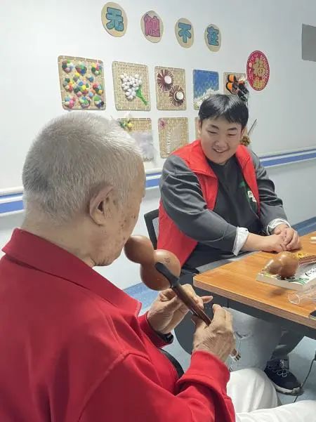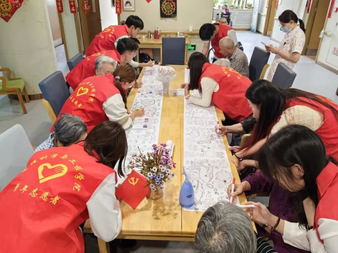 10月13日下午,8名志愿者在基地工作人员的讲解下了解此次志愿活动的主要内容以及注意事项,随后在工作人员的带领下来到活动地点,志愿者与老人们进行互动式涂鸦。志愿者们耐心倾听老人们的心声,他们感受到了来自志愿者的温暖,脸上都挂满笑容,现场气氛温馨。