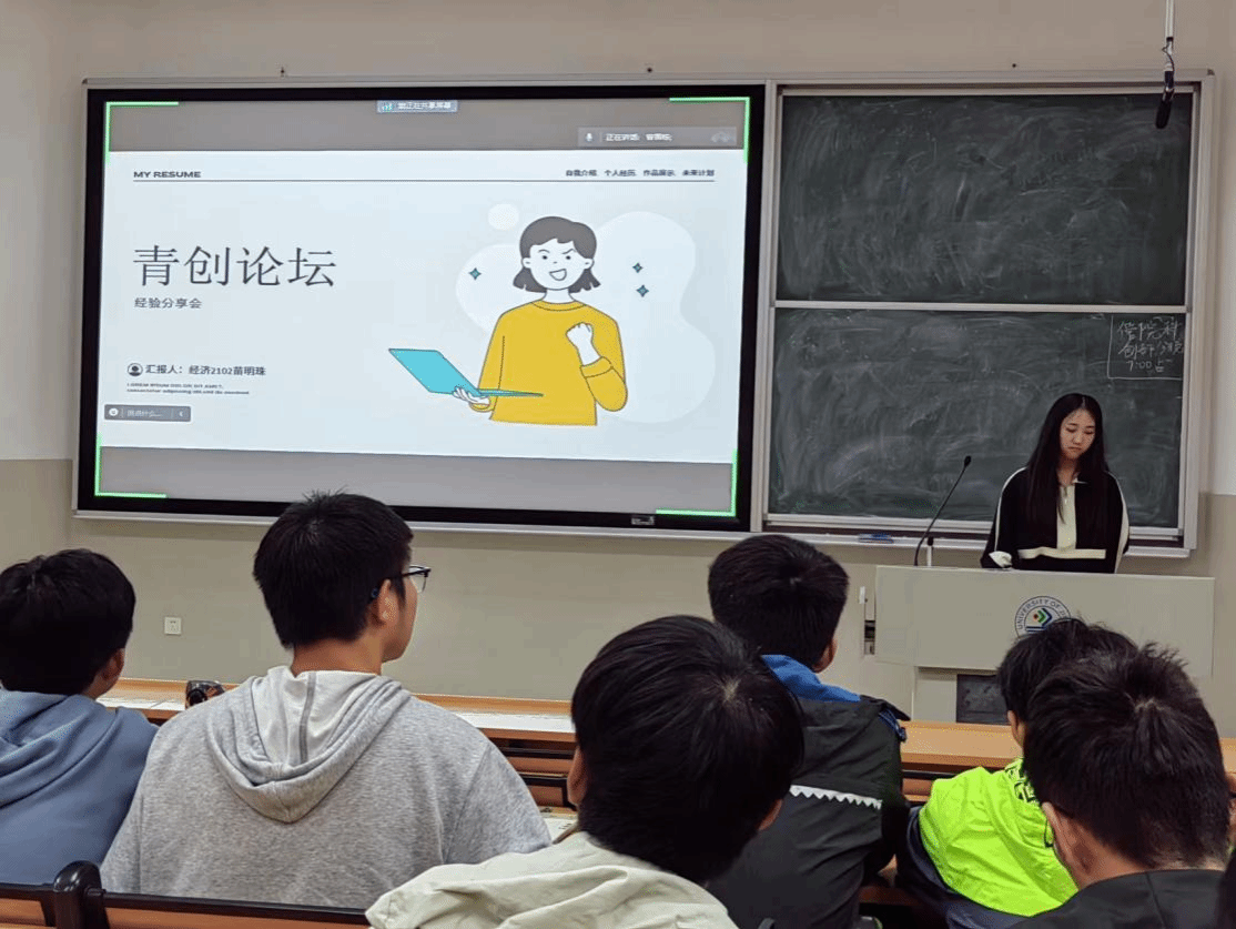 本次分享会邀请了两位科创比赛经验丰富的同学作为分享嘉宾,他们分别是ai做爱 的曾国栋、商学院的苗明珠,共同为前来学习创新创业赛事经验的同学作慷慨分享。