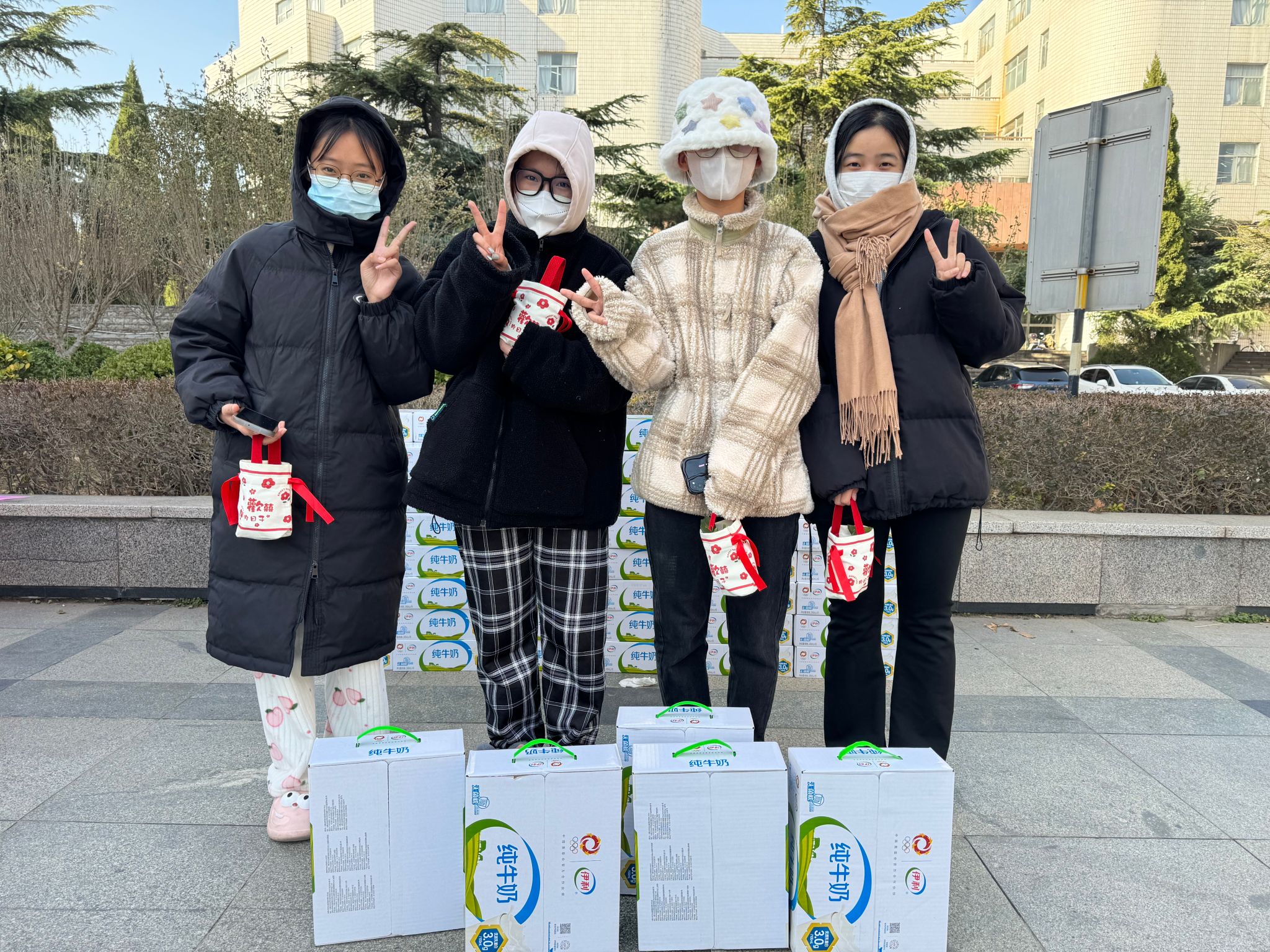 袋袋礼物,一举成“硕”。学院为每一位考研学子准备一个暖心脐橙,寓意心想事“橙”,祝愿每一位考生都能达成梦想,实现自己的理想目标。为每一位备考学子送一箱牛奶,为他们加油助力,祝福大家士气如虹,从容提笔,一举成“硕”!礼物虽小,但饱含了学院对考研学子们浓浓的关爱和殷切的期盼,希望考研学子平安如意,一“研”为定、成功上岸!