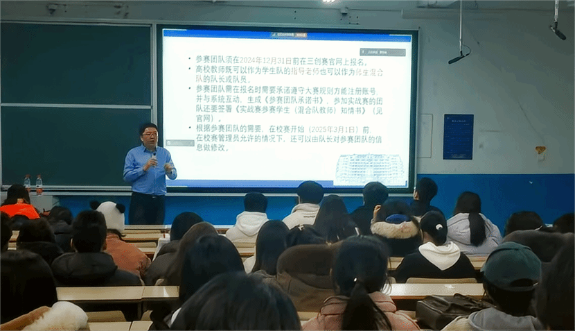 宣讲伊始,宋磊教授详细介绍了三创赛的备赛技巧,鼓励同学们要敢于突破传统思维,勇于创新,并从国家政策变化、社会结构改变、社会理念更迭、科学技术变革、学科创业领域、市场痛点要求以及个人兴趣爱好等多个方面,深入剖析了项目选题的方法和破题方向。他强调,一个好的项目选题应该紧跟时代潮流,符合市场需求,同时又能体现个人的专业、兴趣和特长。针对同学们在备赛过程中可能遇到的常见问题,如选题视野狭隘、题材过大、创新受经验和知识储备影响常常不足、对产品和市场不做调研、盈利模式不清晰、服务内容过多等,宋磊教授也给出了具体的解决建议,鼓励同学们要拓宽视野,敢于尝试,同时要注重市场调研和数据分析,确保项目的可行性和盈利性。
