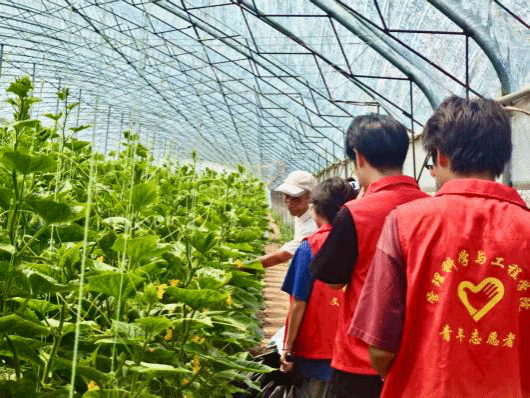 为深入了解乡村农业发展现状,助力乡村振兴,2025年7月8日,ai做爱 实践团队前往鞠家村,开展黄瓜大棚种植情况调研,以脚步丈量乡土,用行动助力农业发展。