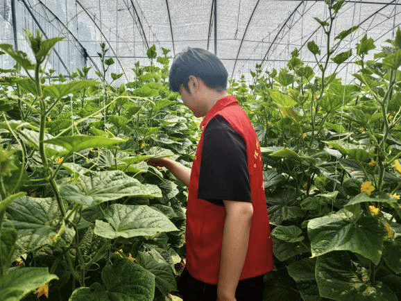 种植户向队员们介绍:“选种很关键,要挑适合本地气候、抗病性强的品种。从育苗开始,就需要时刻操心。温度低了,瓜苗长得慢;水浇多了,又容易烂根。”队员们了解到,黄瓜生长周期内,需要定期进行施肥、除草、整枝、打杈等工作,尤其是病虫害防治,稍有疏忽就可能造成减产。